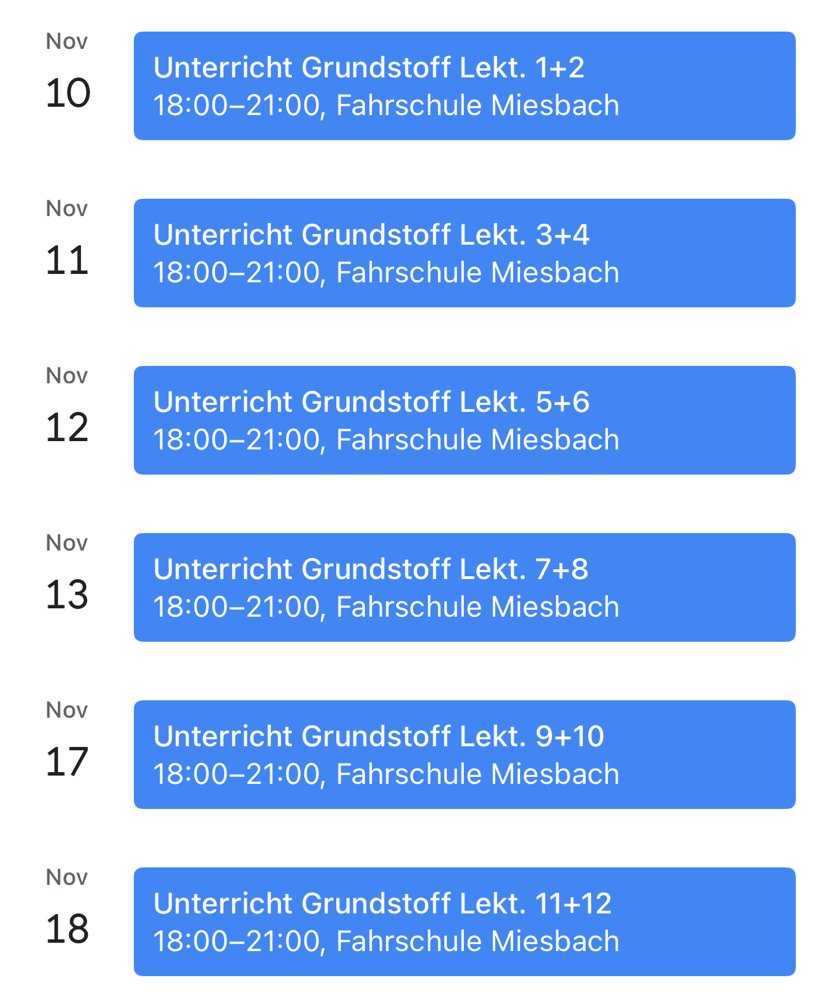 In Schliersee findet ab dem 08.10.2025 jeden Mittwoch und jeden Donnerstag eine Lektion Grundstoffunterricht statt.